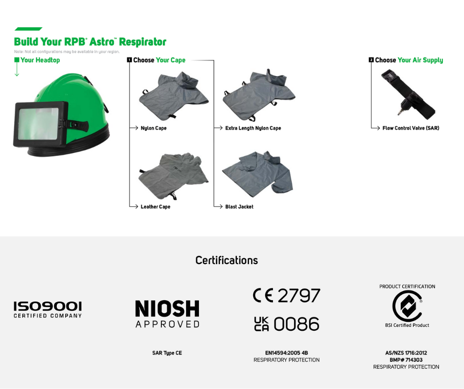 โดยหมวกพ่นทราย RPB Astro มีค่าบำรุงรักษาตลอดอายุการใช้งานและค่าเปลี่ยนชิ้นส่วนที่ต่ำ ทำให้คุ้มค่าทุกบาทที่จ่ายไปโดยที่ยังคำนึงถึงความปลอดภัยสูงสุดของผู้ปฏิบัติงาน